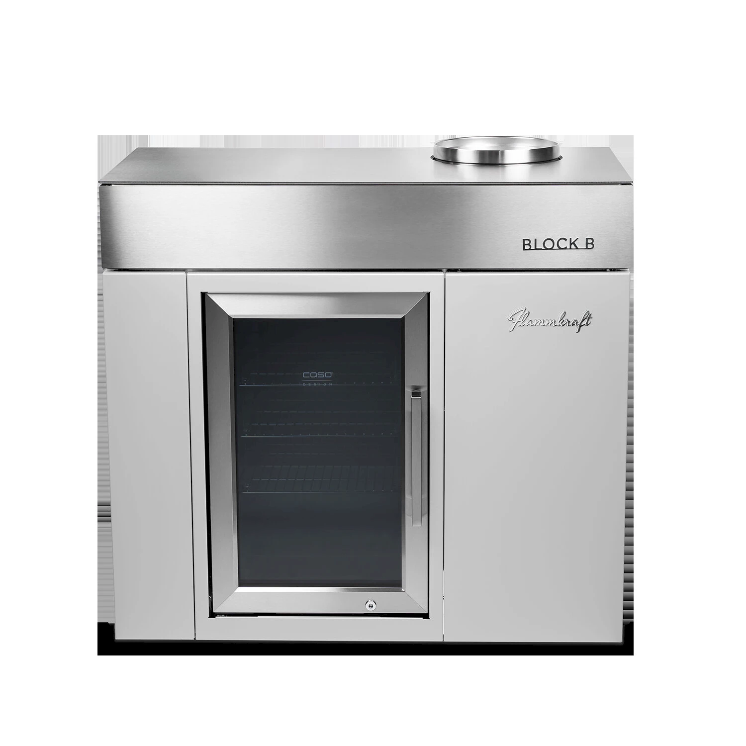 - Block B je flexibilný a funkčný chladiaci a barový modul zo série Flammkraft Block – určený pre štýlové večery na terase, v záhrade alebo aj v interiéri.