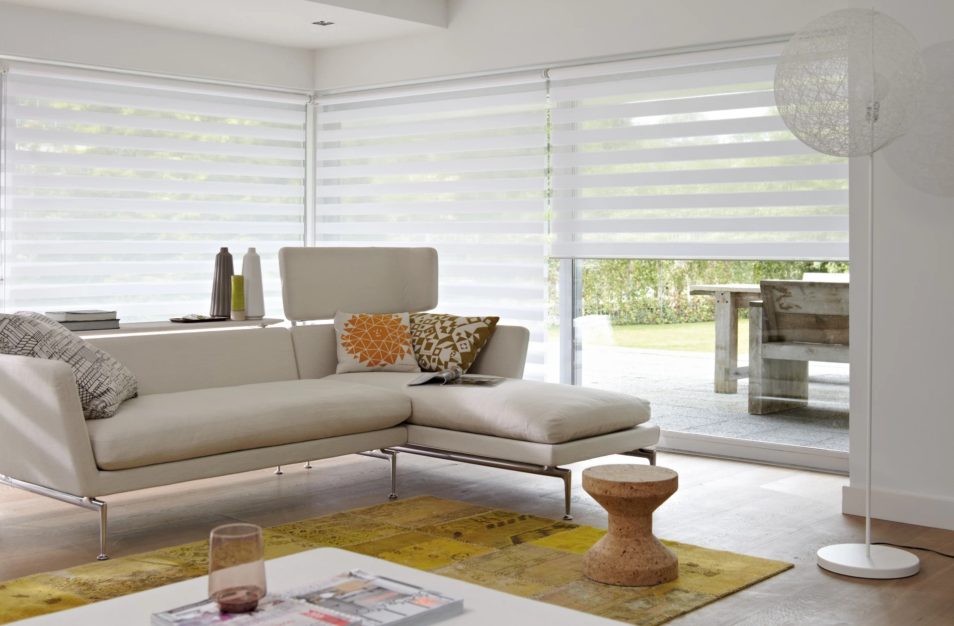 - Vďaka striedaniu transparentných a nepriehľadných pásov látky umožňujú plynulú reguláciu svetla a súkromia presne podľa Vašich potrieb.