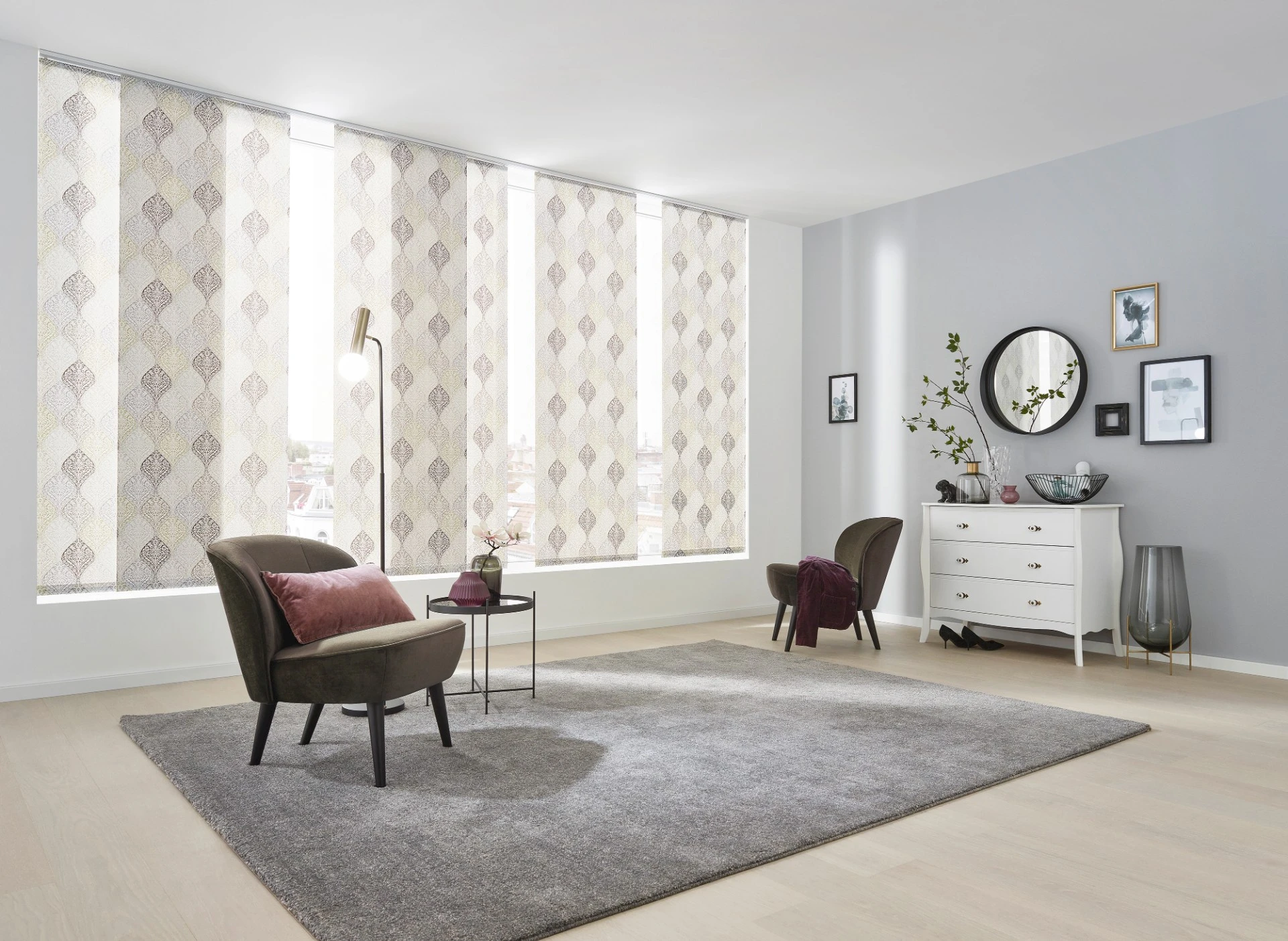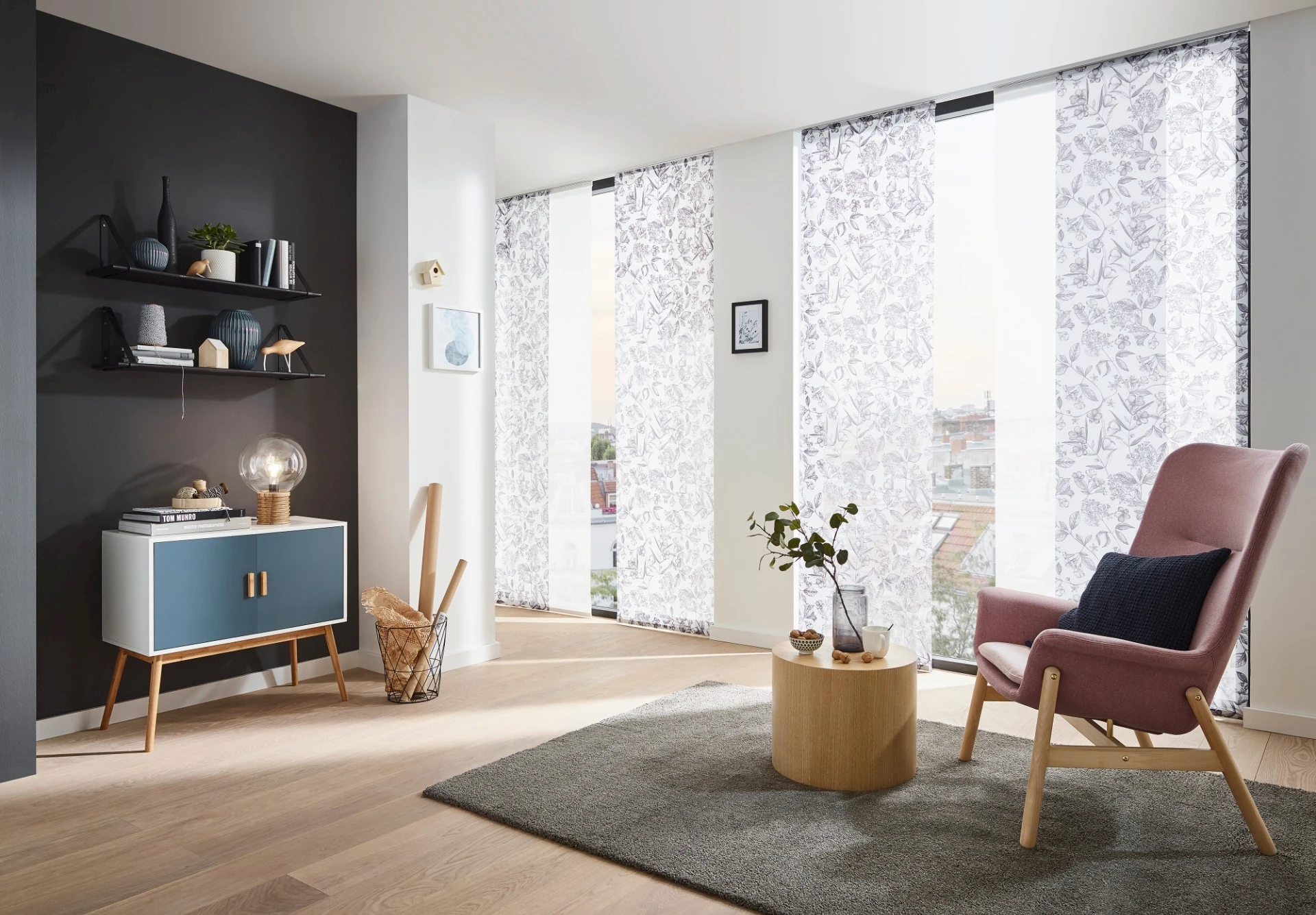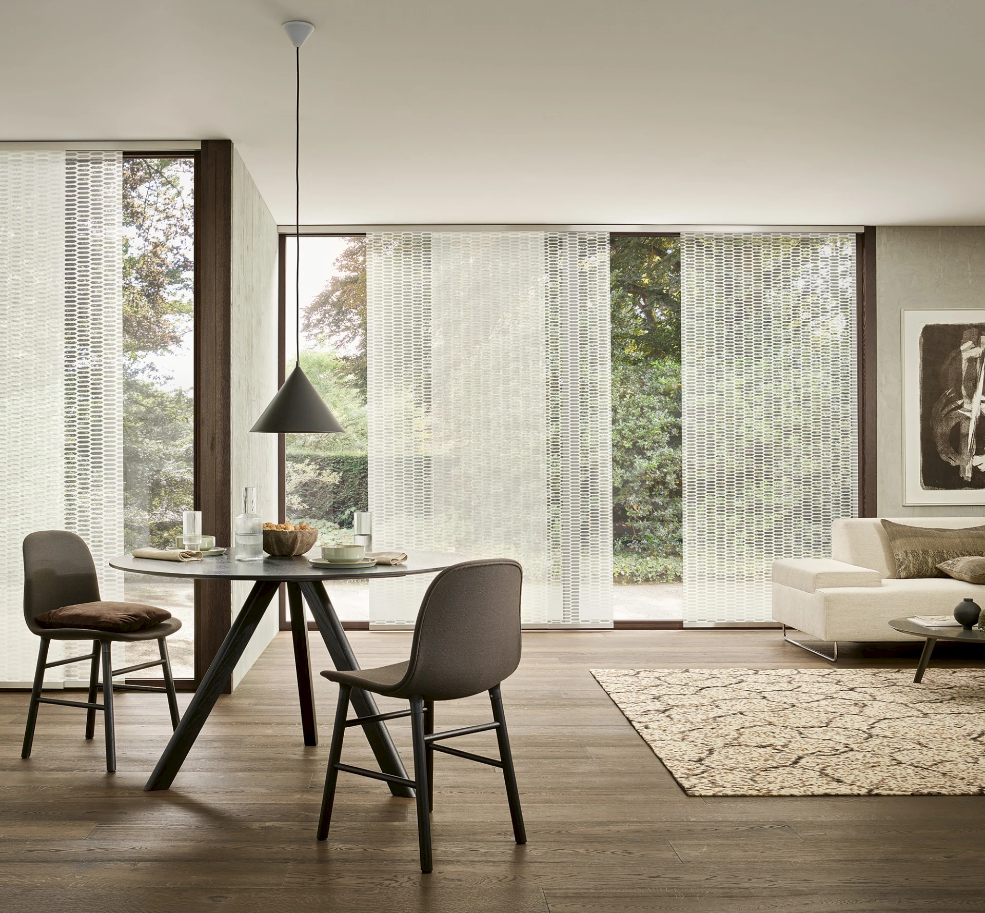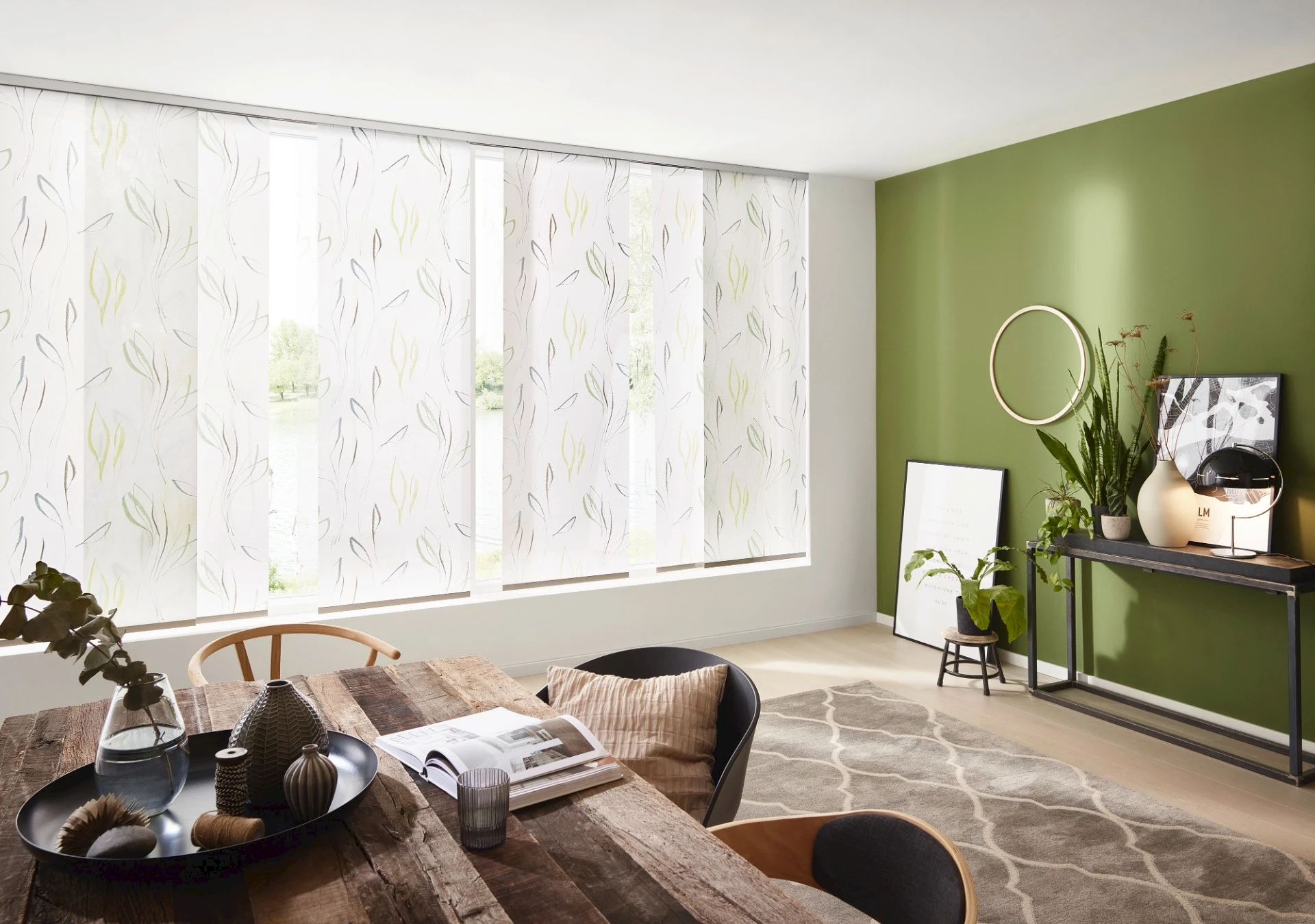 - Panelová stena predstavuje elegantné a funkčné riešenie tienenia veľkých okien, presklených stien alebo ako štýlový prvok na rozdelenie priestoru.
