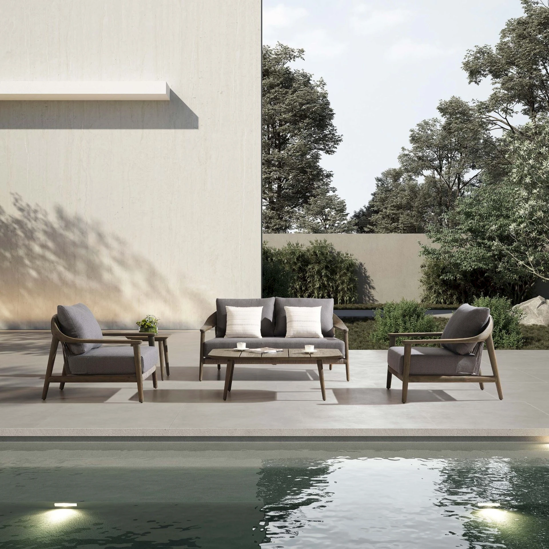 - Rám každého kusu je vyrobený z prvotriedneho teakového dreva s povrchovou úpravou, ktorá zvyšuje jeho odolnosť voči vlhkosti, opotrebovaniu a poveternostným vplyvom.