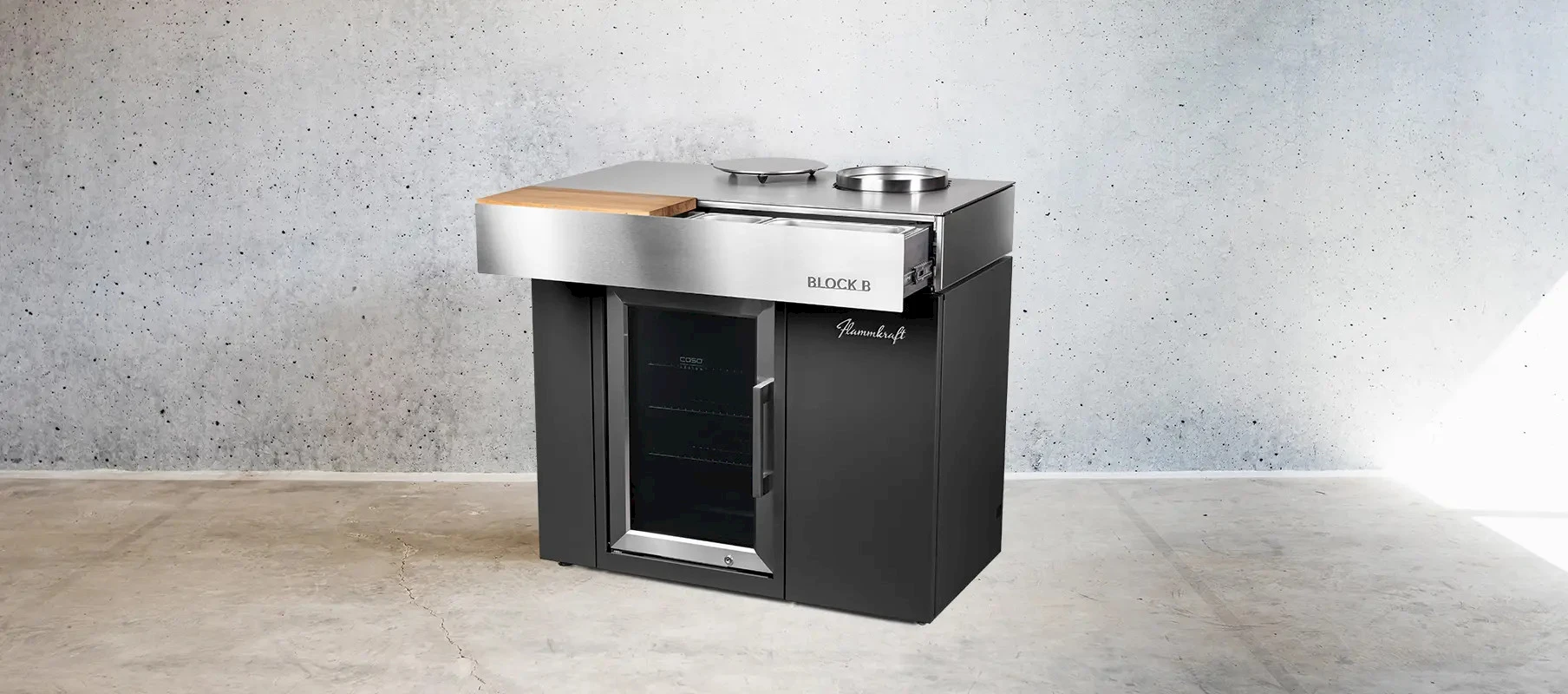 - Block B je flexibilný a funkčný chladiaci a barový modul zo série Flammkraft Block – určený pre štýlové večery na terase, v záhrade alebo aj v interiéri.
