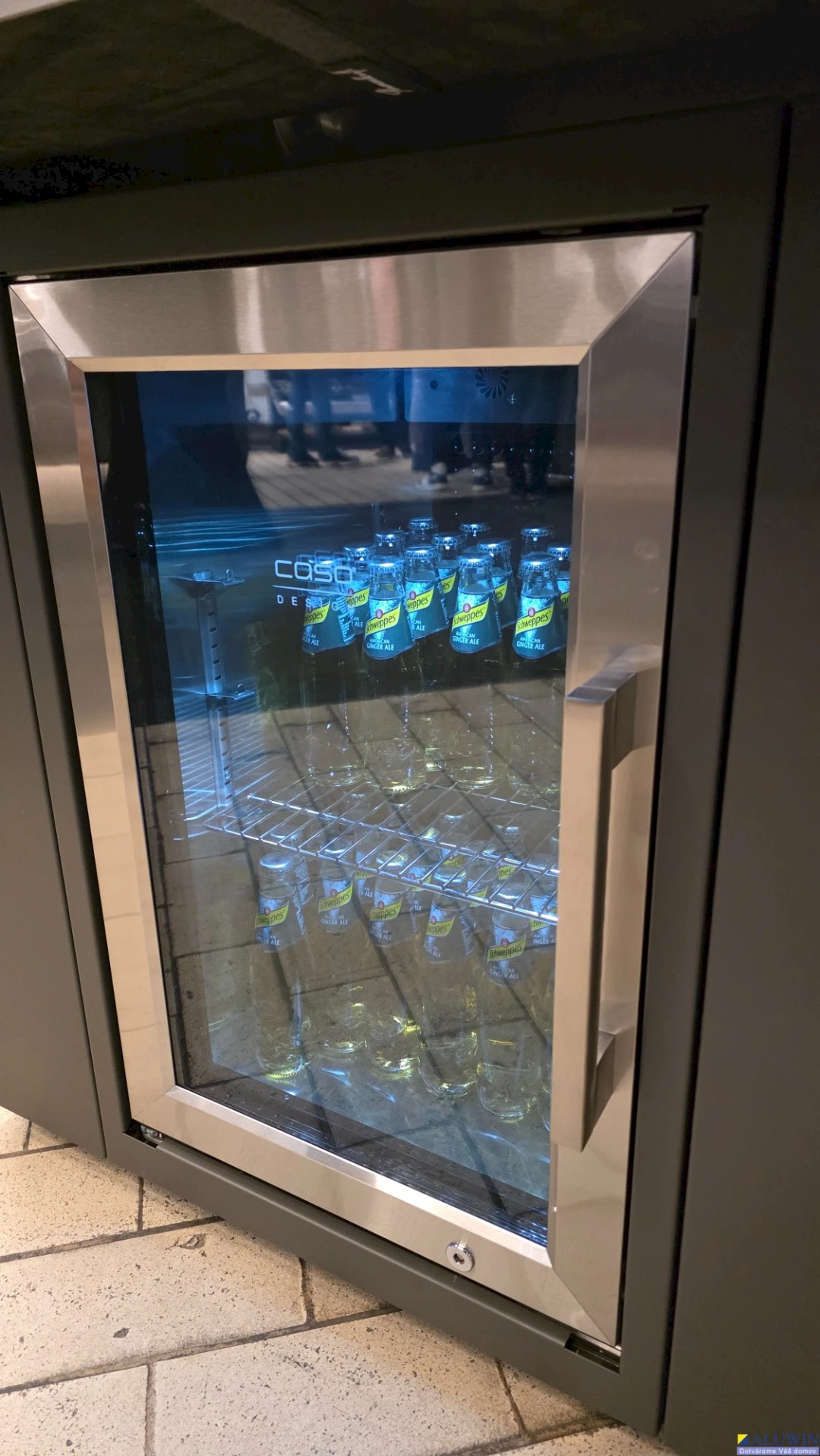 - Chladnička je centrálne zabudovaná v základni a svojím nerezovým opláštením a samozatváracími dvierkami s tmavým UV sklom plynulo zapadá do čistého dizajnu Flammkraft.