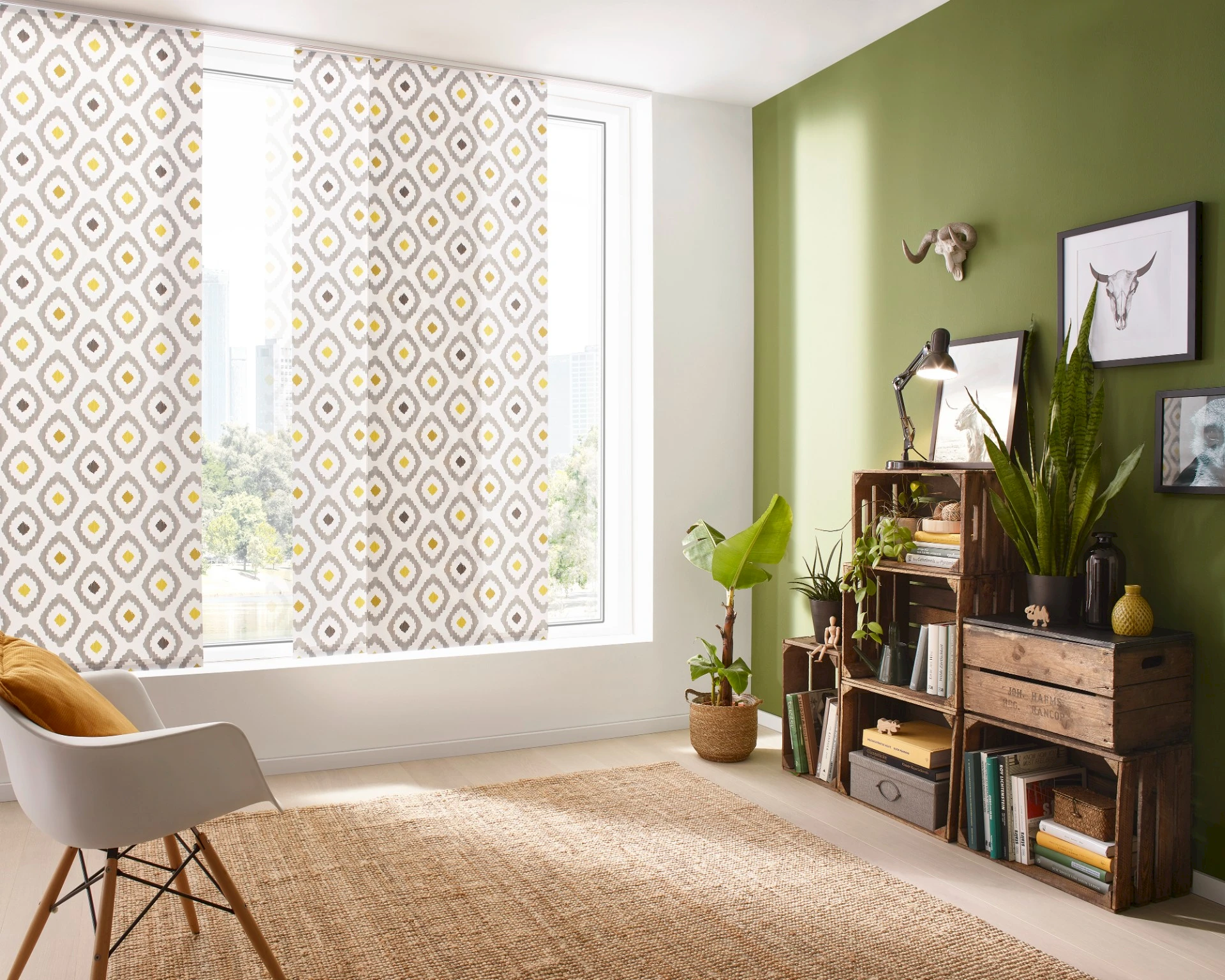 - Panelová stena predstavuje elegantné a funkčné riešenie tienenia veľkých okien, presklených stien alebo ako štýlový prvok na rozdelenie priestoru.