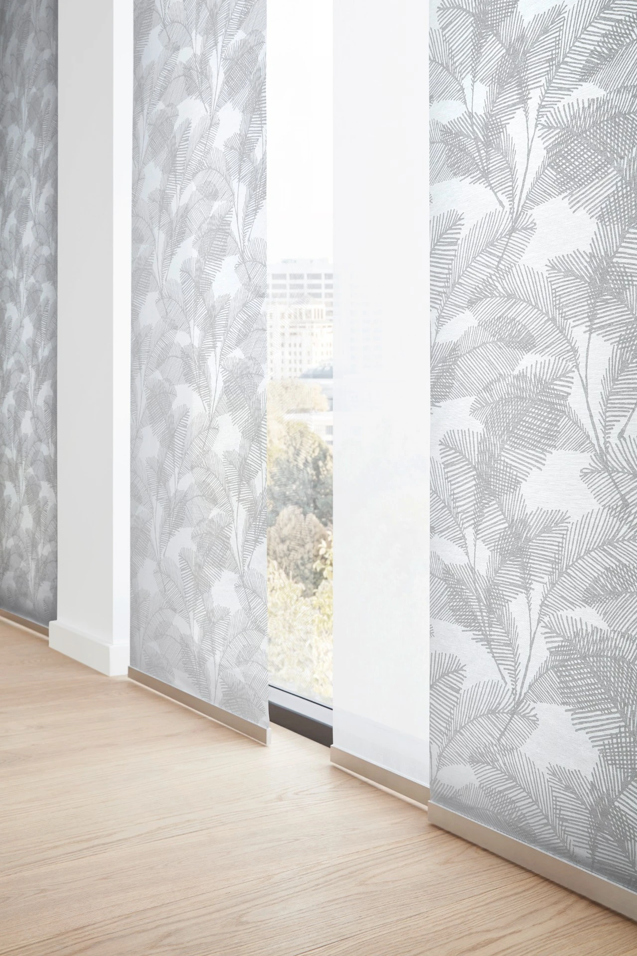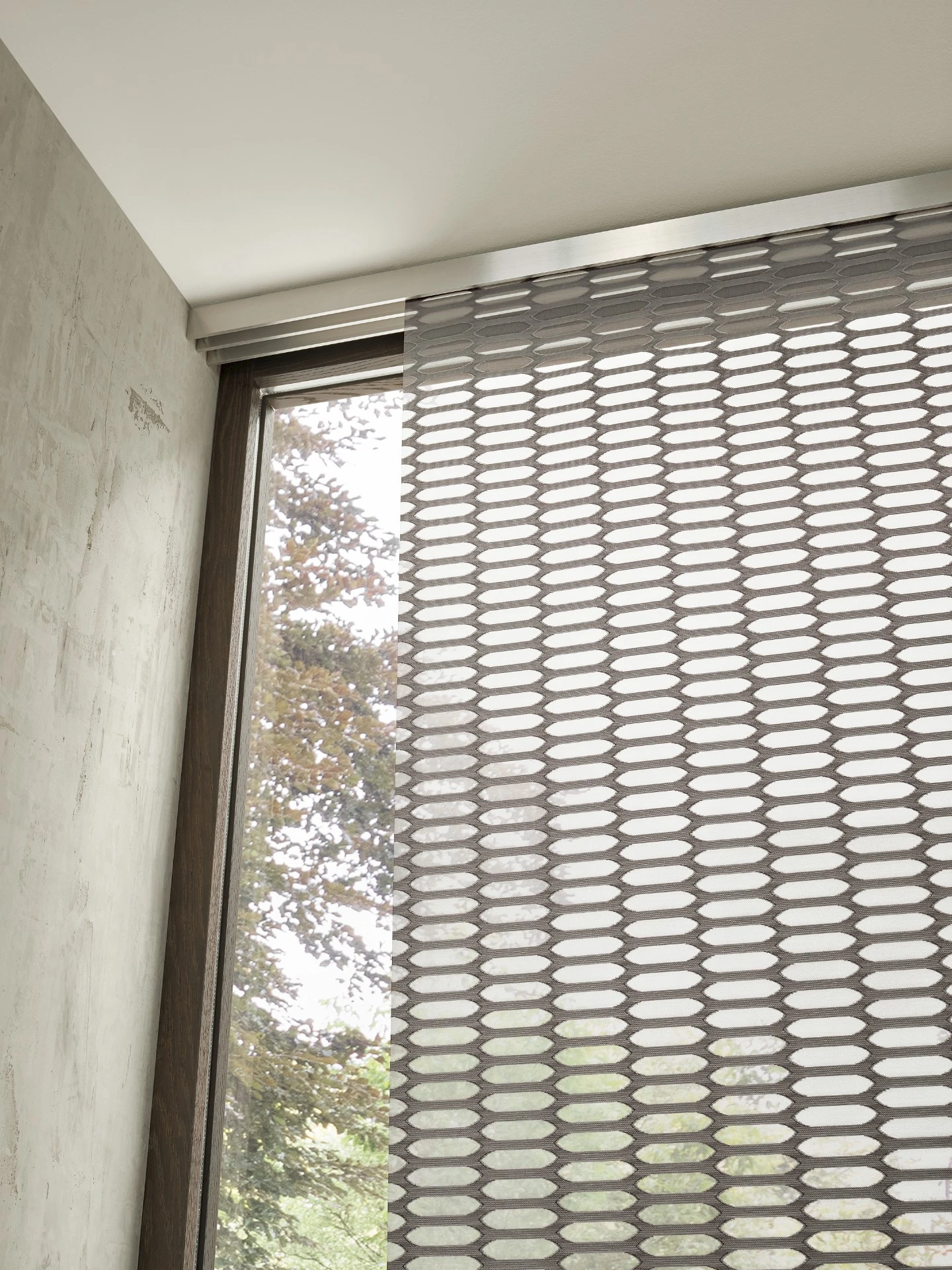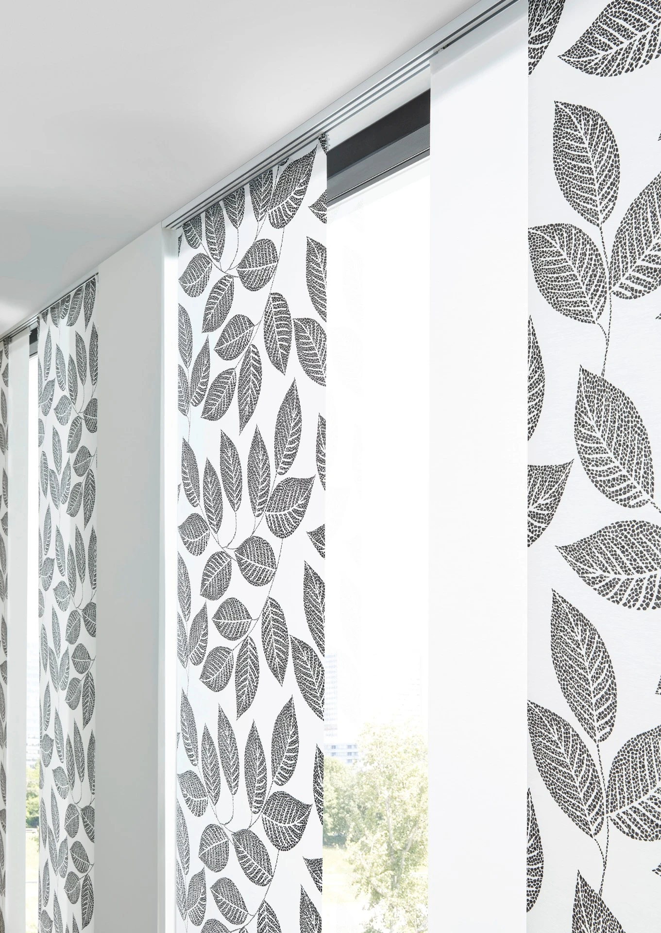 - Panelová stena sa skladá z niekoľkých vertikálnych textilných panelov, ktoré sa pohybujú v koľajnicovom systéme.