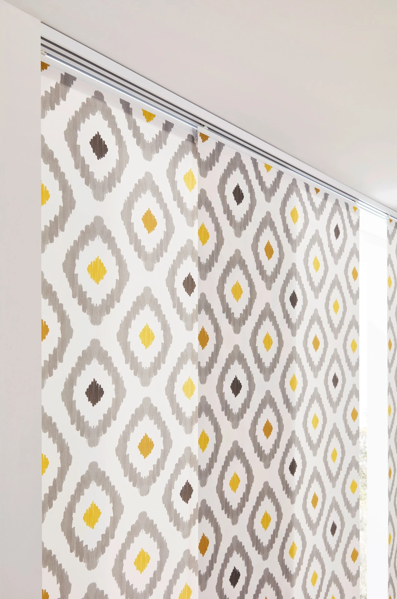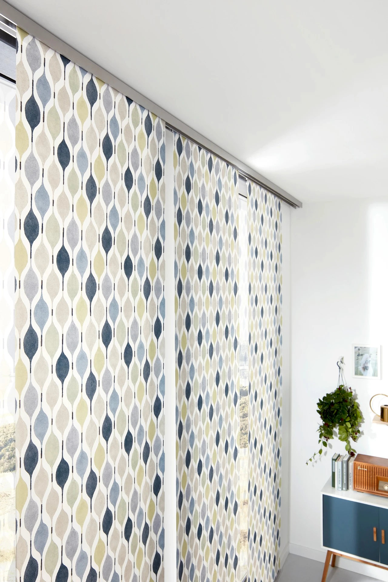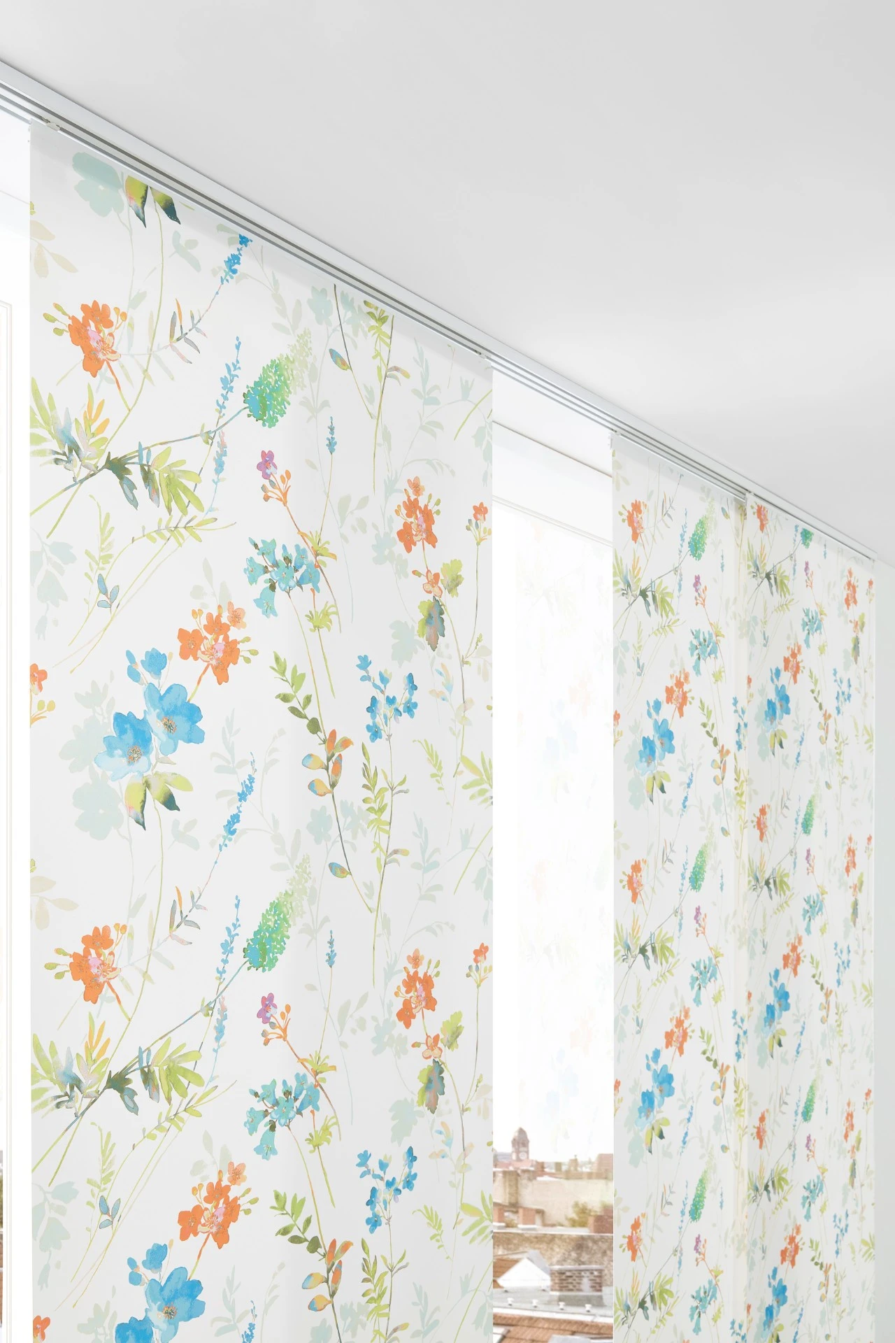 - Panelová stena sa skladá z niekoľkých vertikálnych textilných panelov, ktoré sa pohybujú v koľajnicovom systéme.