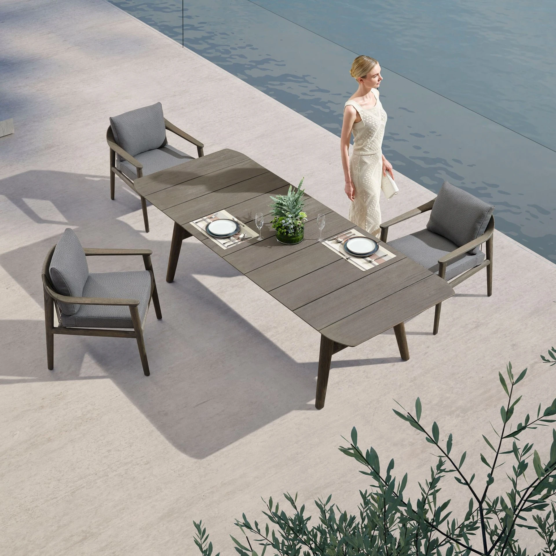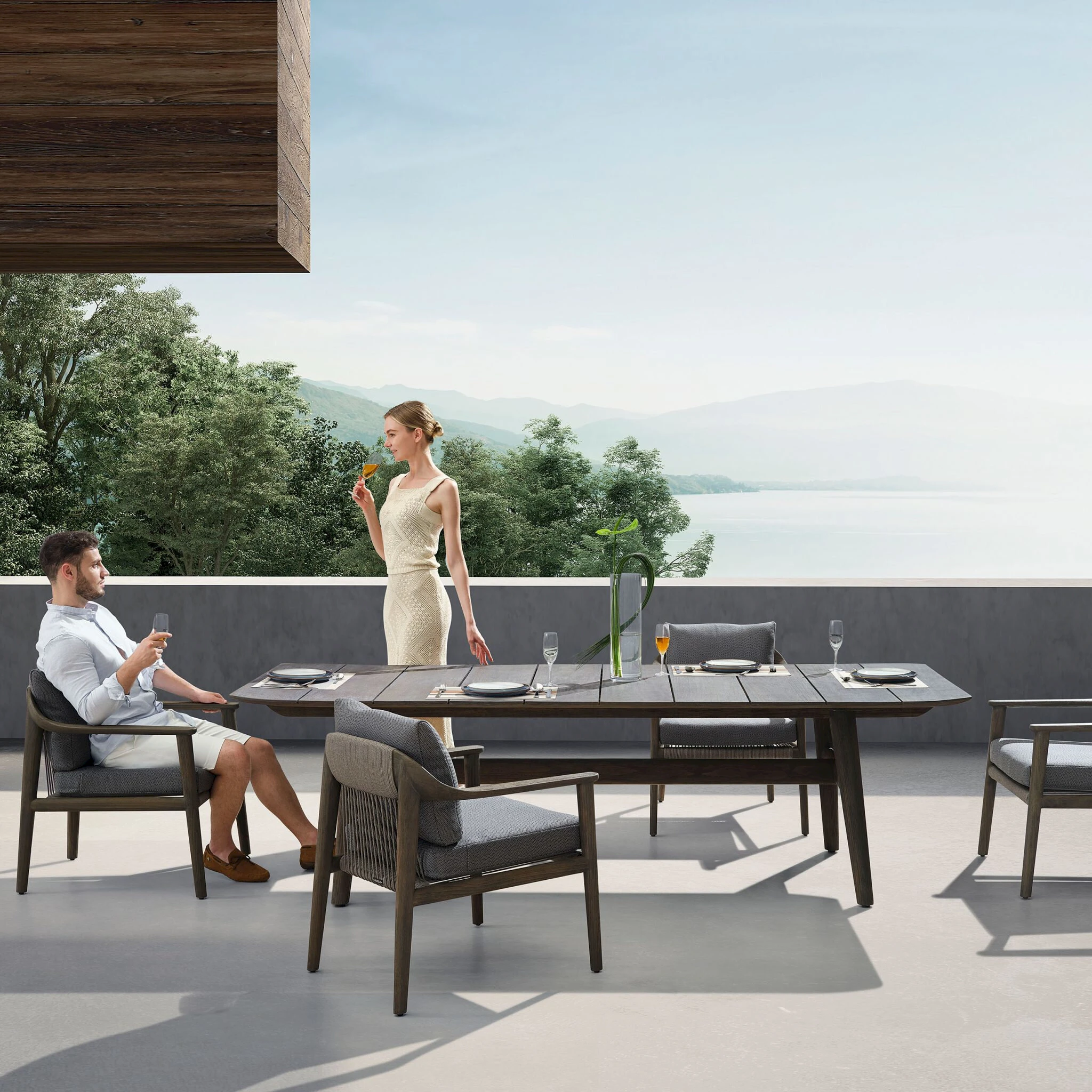 - Rám každého kusu je vyrobený z prvotriedneho teakového dreva s povrchovou úpravou, ktorá zvyšuje jeho odolnosť voči vlhkosti, opotrebovaniu a poveternostným vplyvom.
